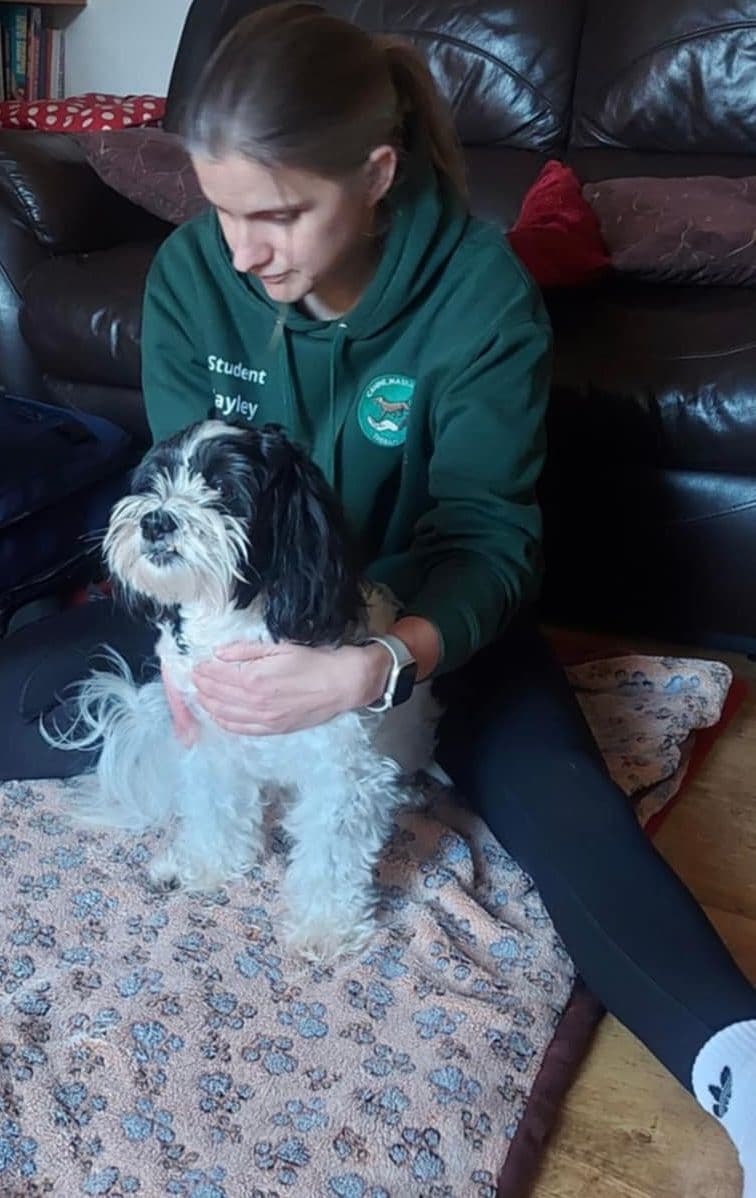 Frank is quite an anxious dog and I’m sure the massages helped reduce his anxiety and helped him to relax. He was almost asleep by the end of the session.